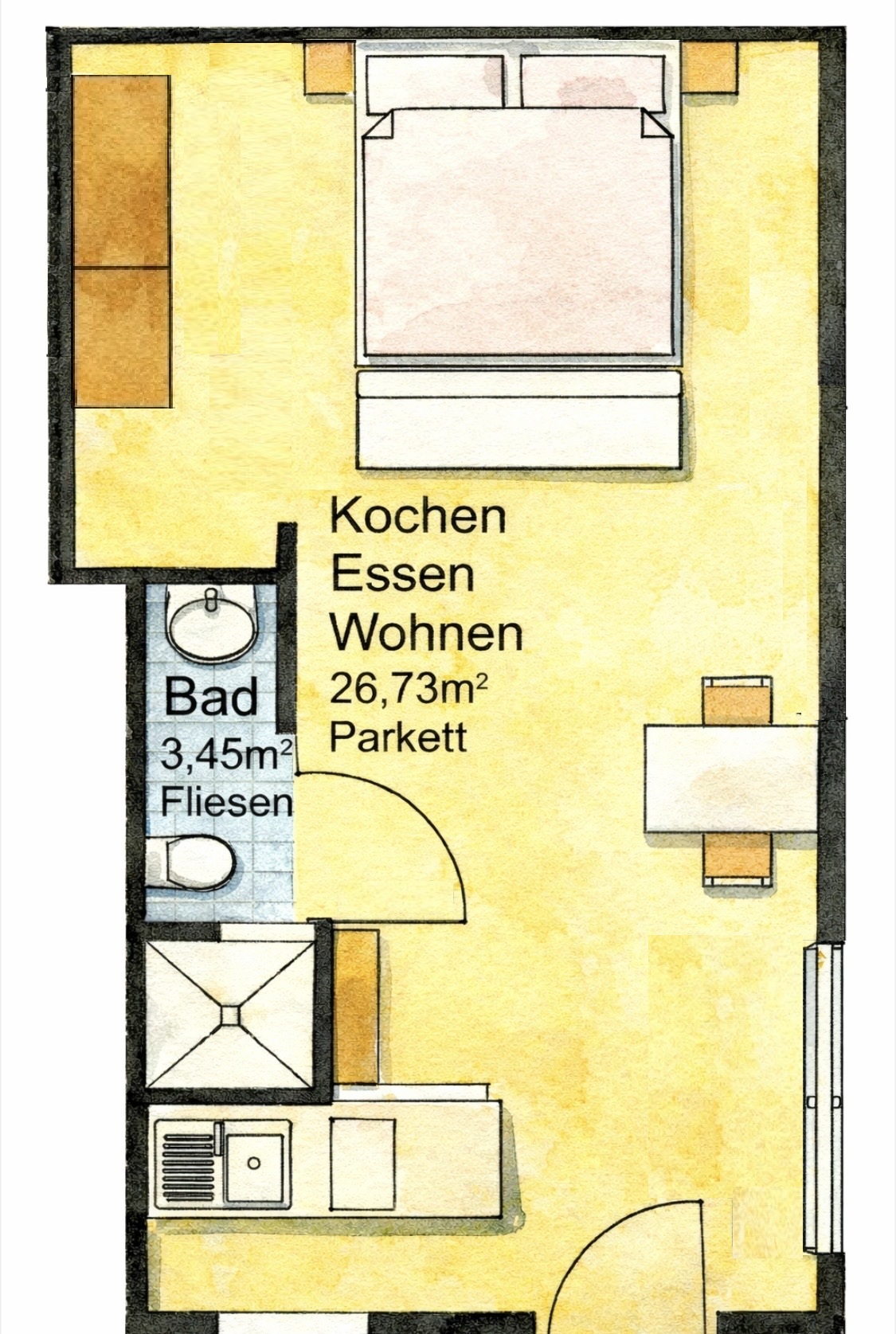 Das 1-Zimmer Apartment „Die kleine Feine“ mit eigenem kleinen Garten ist mit 30m² ideal für Singles, ein Paar oder ein Paar mit einem Kind.